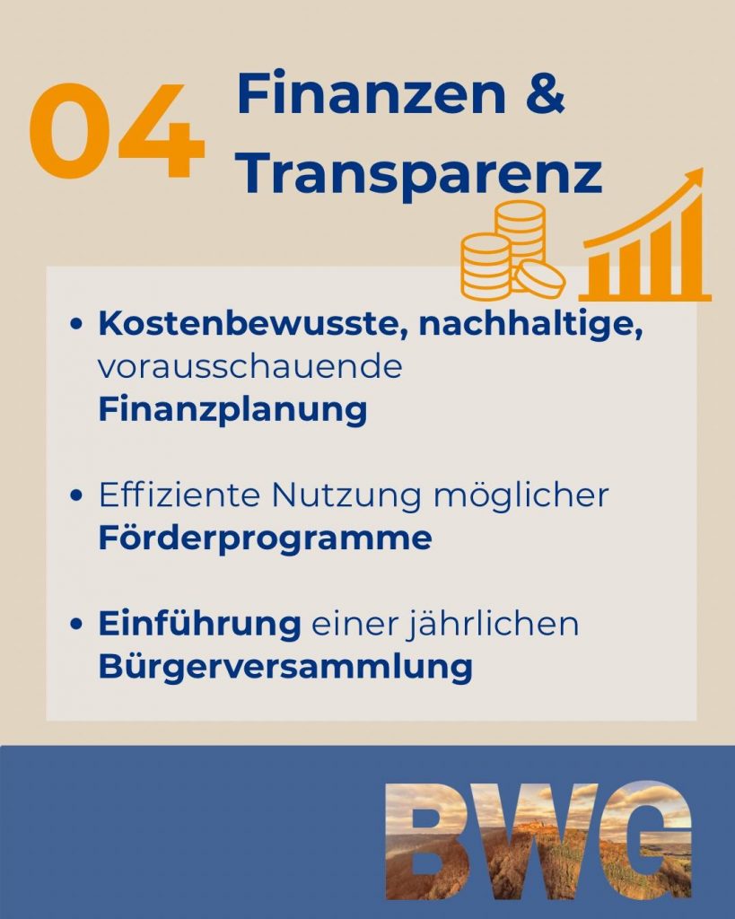 Wir wollen auch zukünftig, eine bürgernahe, sachbezogene und transparente Politik gestalten.